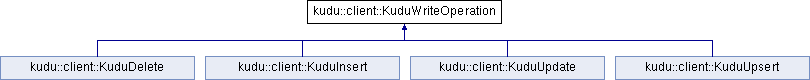 Implemented in kudu::client::KuduDelete, kudu::client::KuduUpdate, kudu::client::KuduUpsert, and kudu::client::KuduInsert.