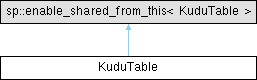 A KuduTable holds the current schema of the table. Any given KuduTable object belongs to a specific KuduClient object.